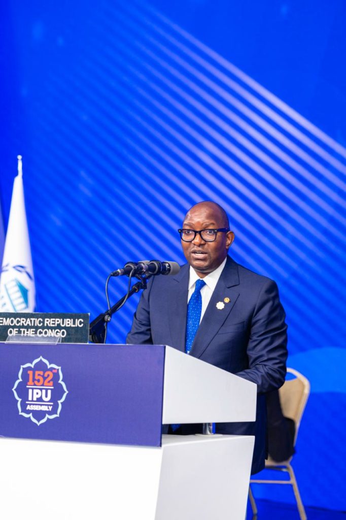 « Si nous voulons léguer aux générations futures un monde plus pacifique, plus juste et durable, c’est maintenant que nous devons agir. C’est ainsi que le Parlement de la RDC s’engage dans l’accompagnement des processus de paix menés par le Gouvernement sous la houlette de Son Excellence Félix Antoine TSHISEKEDI TSHILOMBO, Président de la République, notamment l’Accord de Washington signé entre le Rwanda et la RDC pour mettre fin à l’instabilité chronique dans sa partie Est alimentée par l’exploitation illicite des ressources naturelles », a-t-il souligné.