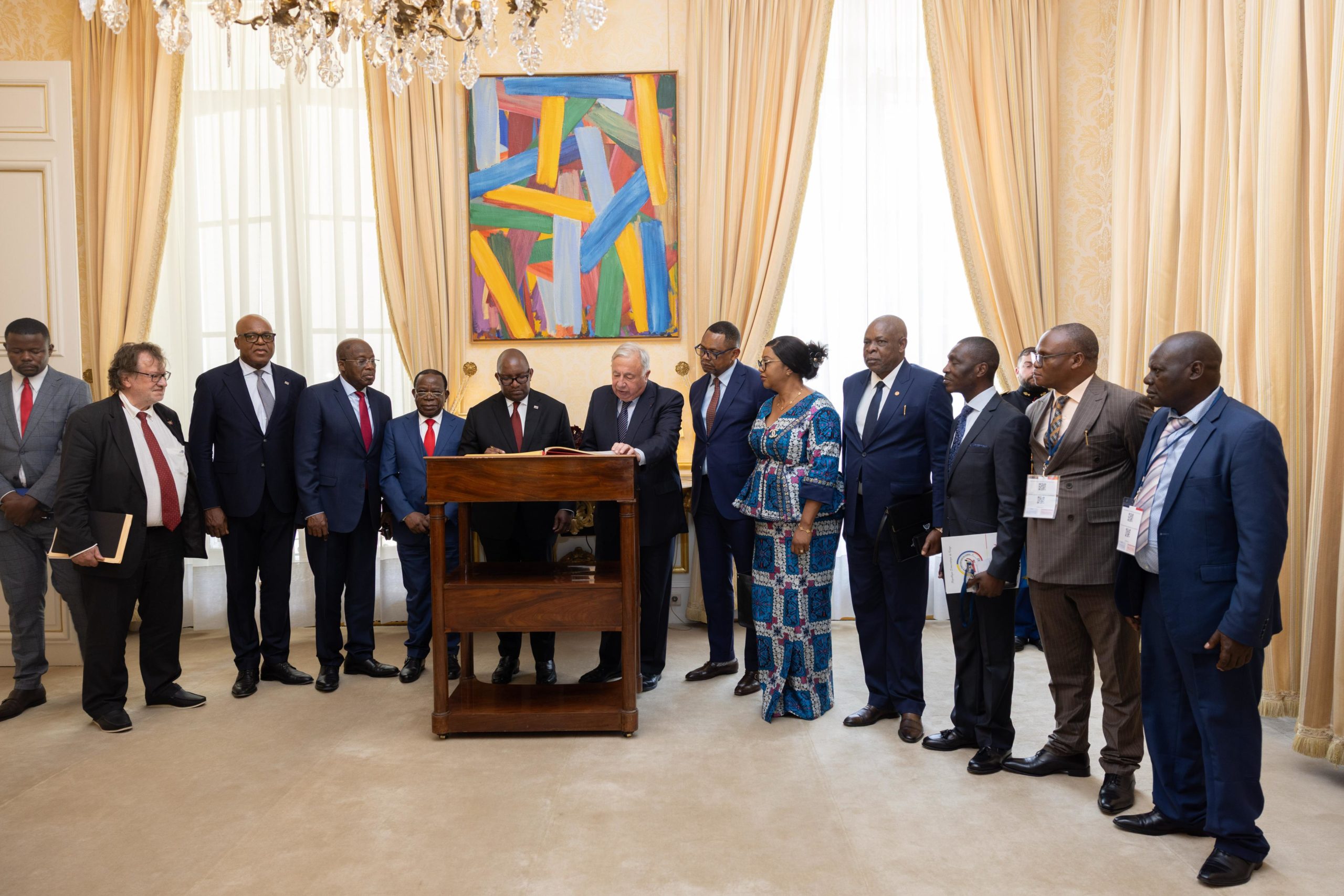 A l’issue de cette audience, les deux présidents, celui du Sénat français et son homologue congolais, ont procédé à la signature du protocole de coopération pour le compte de deux institutions parlementaires. Après cette signature, le Président du Sénat congolais a été invité à signer le livre d’or du Sénat français.